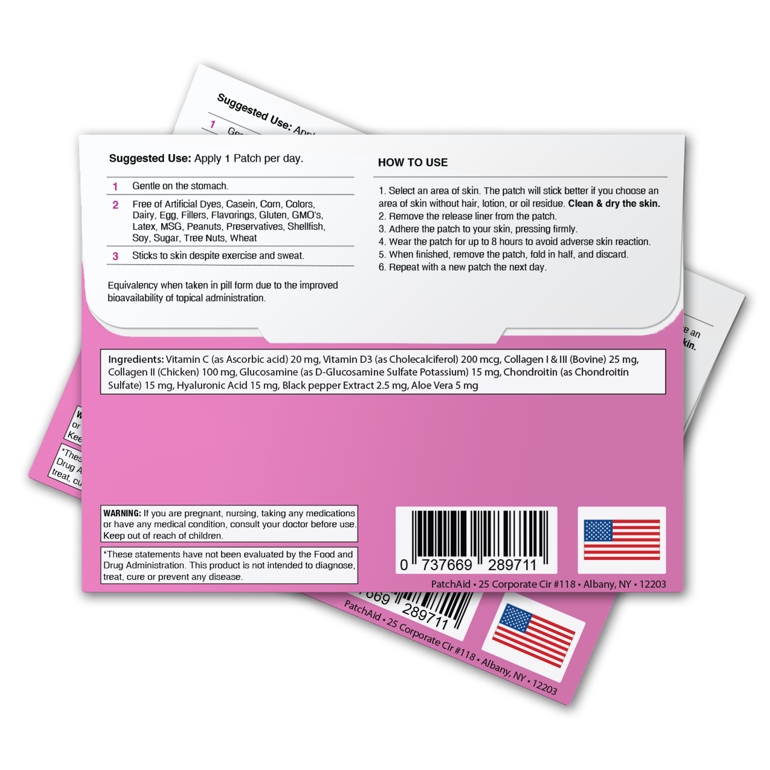 The Collagen Plus Vitamin Patch by PatchAid is a high-demand product for customers seeking support for skin, joint, and bone health. With Collagen Type II, Glucosamine, and Hyaluronic Acid, it promotes elasticity, flexibility, and structural strength.Key Benefits: • Supports skin elasticity, joint mobility, & bone health • Features Collagen Type II, Glucosamine, and Hyaluronic Acid •